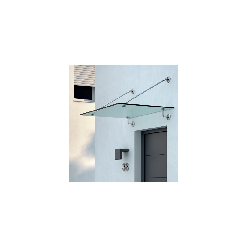 MARQUESINA CON TIRANTES 40.000 ISA E95100 VIDRIO 16 A 25 INOX SATINADO AISI 316 L2000 X W1500 IN
