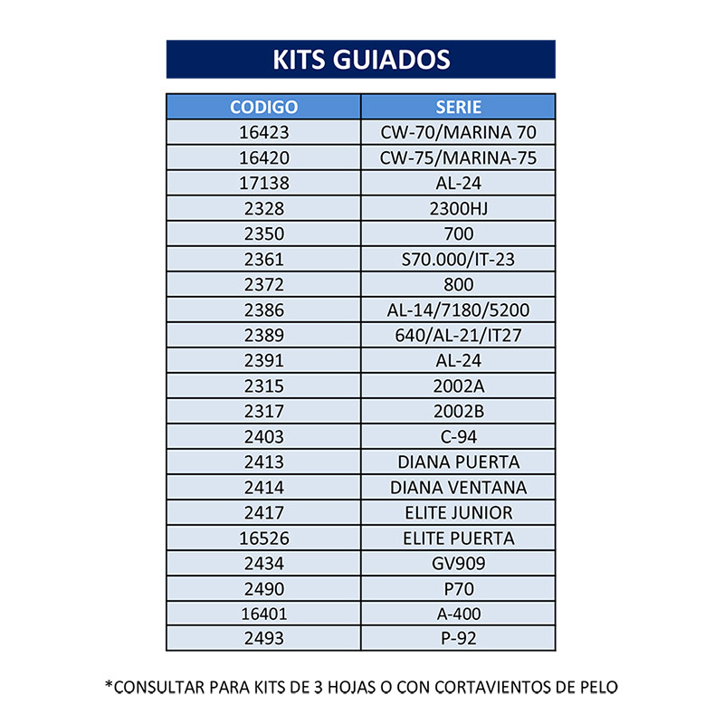A. TABLA KITS GUIADOS POR SERIE
