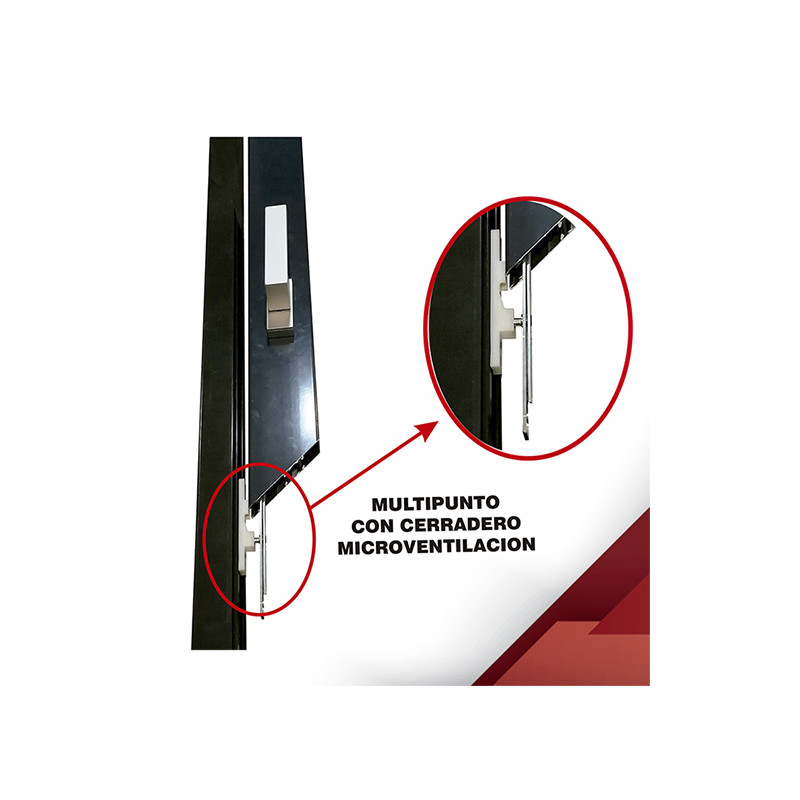 El kit incluye la cremona multipunto de 600mm E15, 1 cerradero de microventilacion, 1 cerradero normal, juego de calzos de 1,2 y 2 mm y la plantilla de instalacion