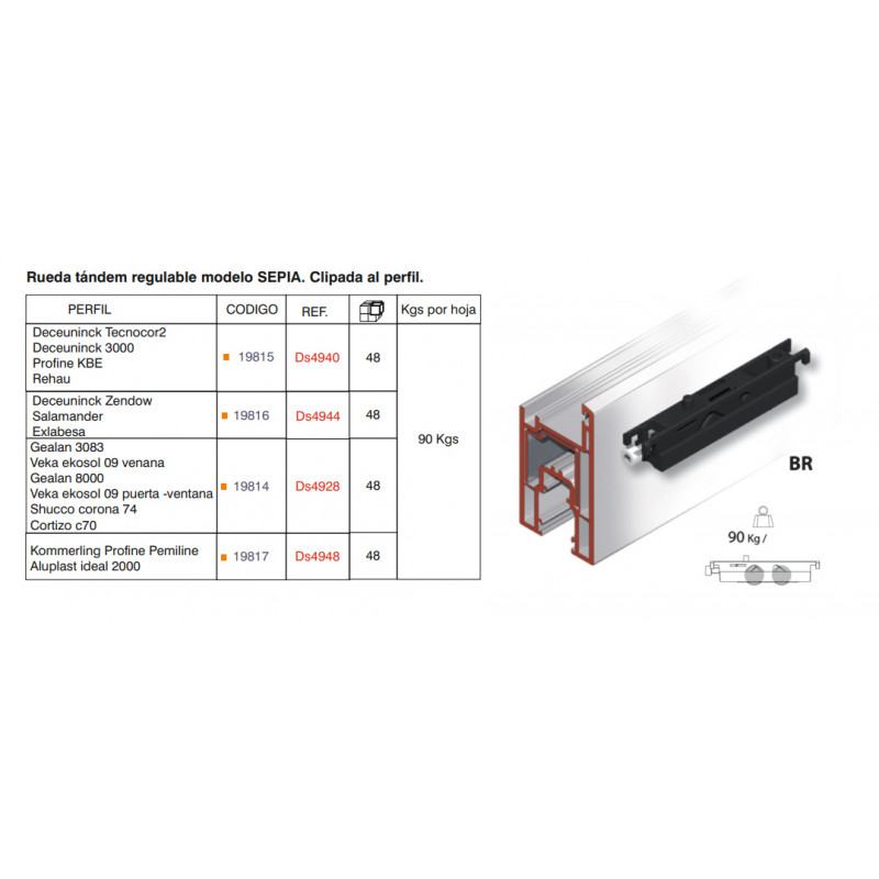 RUEDA SEPIA DS 4948 TANDEM REGULABLE 90 KGS D22