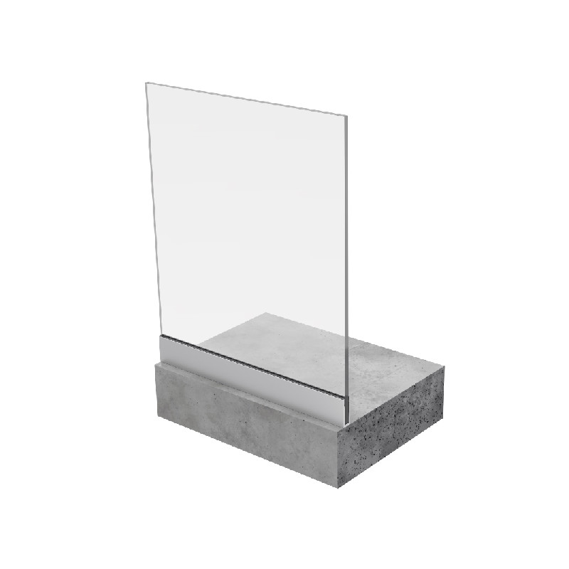 Incluye el perfil U mecanizado a suelo, las cuñas y las gomas para vidrio 6+6. Acabado anodizado plata. El producto se sirve en dos barras de 2,5 metros.